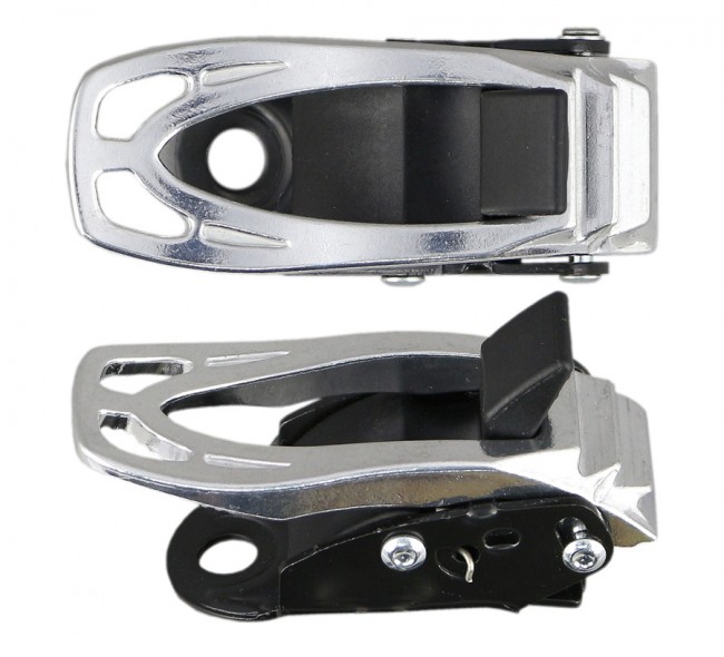 Pompka, klamra do wiązań snowboardowych miękkich. Szerokość paska 23mm. Produkowana we Włoszech z odpowiedniego Aluminium, który ma bardzo dobrą odporność na udar i niskie temperatury. Odległość od środka otworu do pazurka 35 mm.